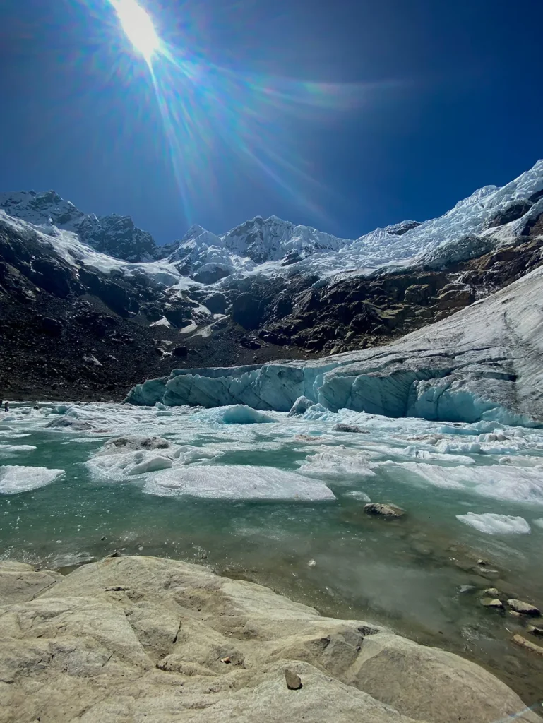 - Luego seguimos el camino hacia la laguna Congelada, admirando los nevados: Paccharaju, Bayoraju y Copa.